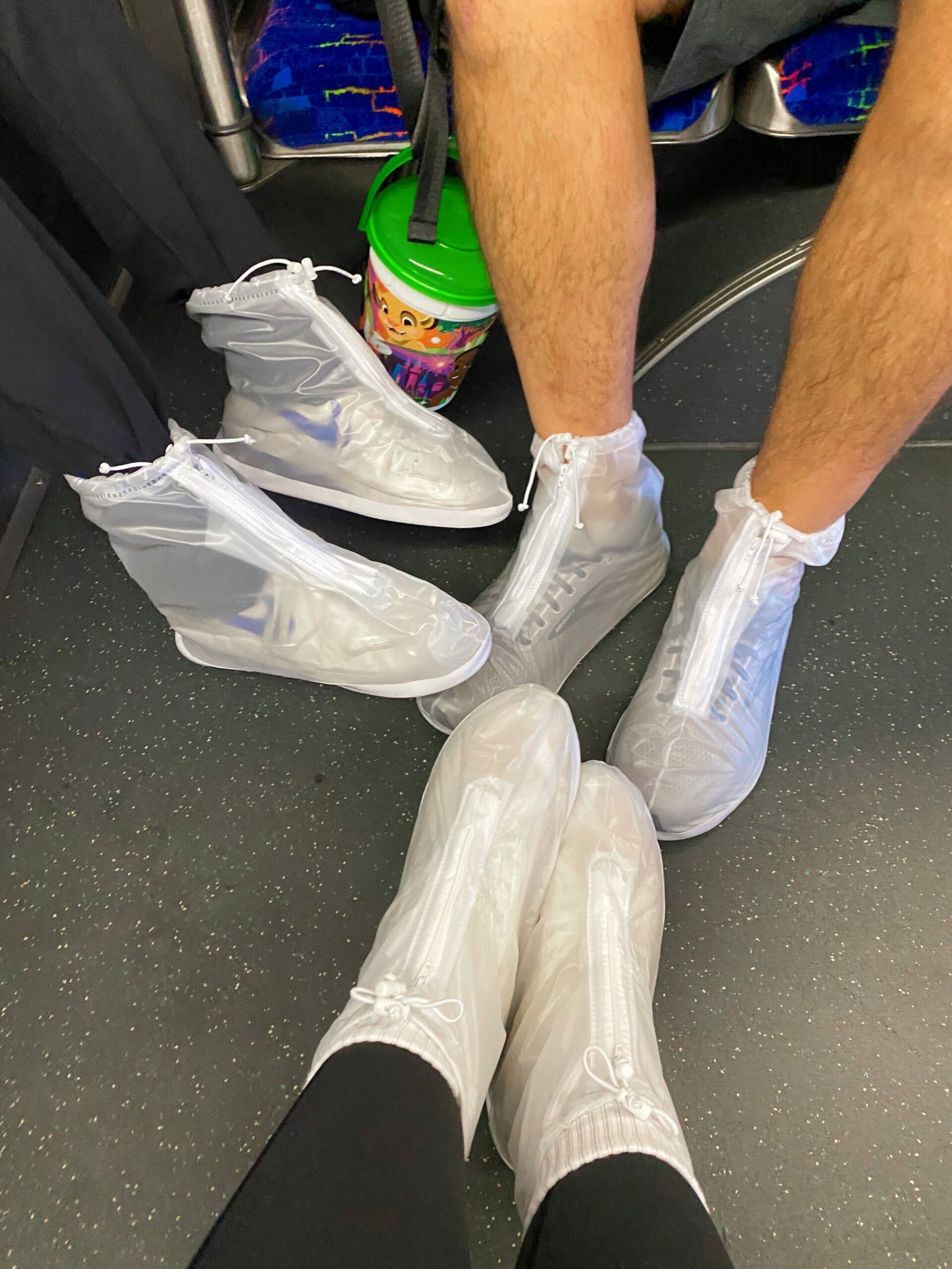 We wore ponchos (always buy them at Amazon; they cost about $ 15 in the parks), and I also brought them with me Shoe ponchos, What saved the day in the end !! We were completely dry and nobody had moist feet. 😉